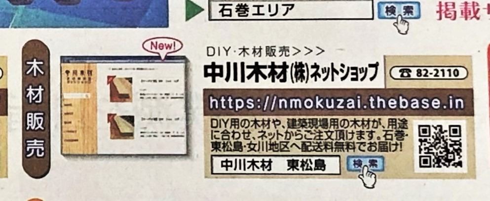 ★11月15日(日)石巻かほく掲載!! | 中川木材ネットショップ